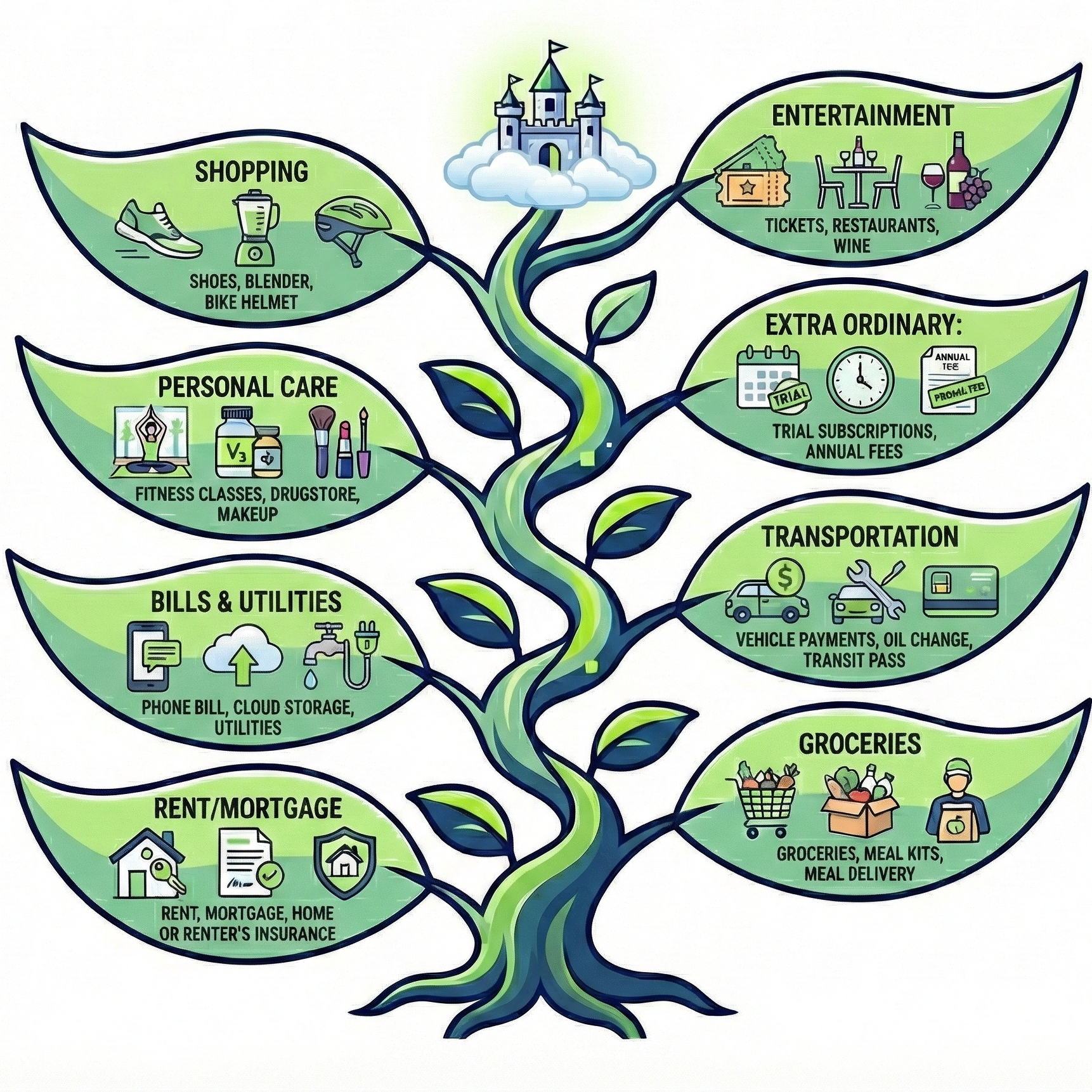 We use eight core “expenditure themes”—your Beanstalk of Expenditures—to assign a specific job to every single dollar.